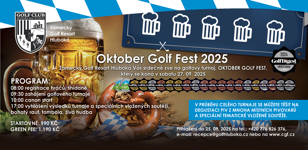 17. 9. Hluboká Open s časopisem Golf - Otevřená turnajová série pro předplatitele, čtenáře a příznivce časopisu GOLF.