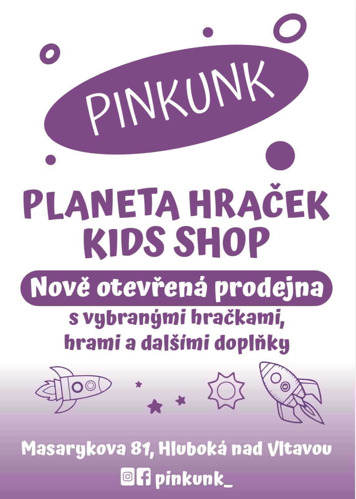 zveme Vás k návštěvě nové prodejny PINKUNK s dětským zbožím v Hluboké nad Vltavou!